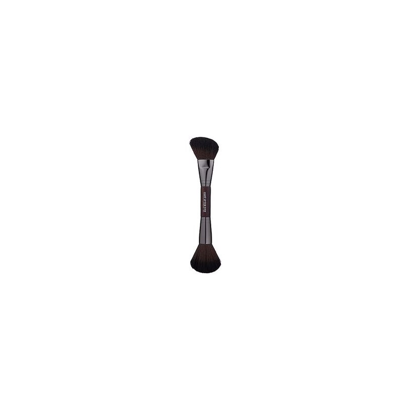 Una brocha doble, que incluye una punta redondeada y otra angulada. Lo que hace: Combinando dos brochas en una, esta doble brocha es la perfecta herramienta para aplicar polvo y esculpir el rostro. Usa el lado redondeado que tiene las fibras rectas y onduladas, para aplicar polvos o iluminadores. El lado angulado, que incluye fibras onduladas, es perfecta para esculpir las mejillas. Esta brocha puede usarse para aplicar polvos sueltos y compactos.